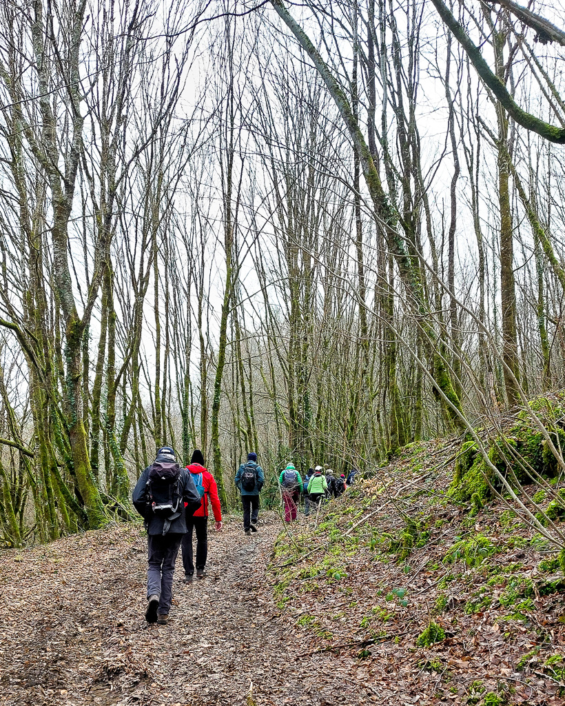 Le top 14 de la reconnaissance du nouveau tracé de l’Agglo se retrouve au rond point de covoiturage à Naves. Ce parcours étant en ligne et suivant la réflexion du loup de l’agneau et du chou, nous réfléchissons à : qui laisse sa voiture, qui la prend, qui ramènera les chauffeurs et qui n’oubliera pas ses chaussures.